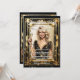 En ornat faux guld vintage art deco stil ram har en vacker illustration av en fin, skalad, blond kvinna med långa skulderlängder med ett lågavklippt svart klänning, som håller upp ett glas mousserande vin för att skaka under nyåret. Hon har en ornat och lyxig konst deco stil golden ram som ger en komplimang till hennes svarta slips, formella klänning perfekt. En melaninkvinna som också bär en omarknad och har en huggklänning i chic figur håller också en skål för firande och har samma ram som omger henne. Mallar för din anpassningsbar visas både på framsidan och baksidan av inbjudan och kan vara personlig till kostym vid ditt särskilda tillfälle. Dessa är perfekter för homosexuella kvinnor som är värd för ett singel party, för en guldårsdag i bröllop, för en svart tidsevenemang eller för ett fantastiskt "nytt år i party" firande.