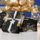 Nyårsafton eller nyårsafton i party med guld på svart, med redo till strejka midnatt, champagne och gåva. Ge era gäster från party eller er betydelsefulla andra något speciellt för att fira det kommande året. Guld, svart, guld glitter.