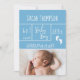 Baby födelsetalet är ett spännande sak till med familj och vänner. Lägg märke till att ditt nyfödda pojke föds med denna moderna utformning med roligt och strömlinjeformad typografi, snyggt och mod. Blått, Grått och vitt färg-redo som personlig med baby-foto, uppgifter om födelsedatum, vikt, längd och fullt. En fotavtrycksillustration också. Besök LDDESIGNLOFT.COM om du vill veta mer om varumärket.