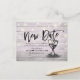 Moderna bröllopsannonsering Uppställning Fotokortmallar - Elegant bokstavsstil, Vintage-champagneglas och strängljus på rustik trähybrid.