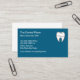 Affärskortet för det moderna tandläkarkontoret skapas med en silver-tonbild i coola och en vit tandbild i en klassisk telefonkort-layout. Designad för tandvård, oral kirurgi eller ortodoontist.