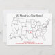 ditt nya hem adress med nära och kära med denna design som omfattar karta i Förenade Stater. Flytta det röda hjärtat till det tillstånd du lever i och lägg till dina nya adress detaljer i grund. Du kan ändra texten i titeln och även bakgrunden färg, teckensnitt och teckensnitt färg. Om du behöver hjälp med flytta av hjärtat, var snäll och meddela mig i min affär. Klicka på "anpassa ytterligare" i blått för att flytta det röda hjärtat.