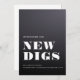 Enkel typografisk design för ett platta kort för flytta annonsering. Den här svarta och vita, enkla förändringen av adress-anpassadet gör det snabbt och snyggt att nyheterna om ditt nya hem! Detta är grått-övertoningsversionen.