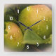 Nya gröna äpplen med en dimmig gräns fyrkantig klocka