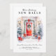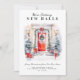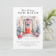 Meddela ditt nya hem till familj och vänner med det här moderna helgdag-annonskortet, med festlig cheer och vattenfärgdörr och christmas inslag.