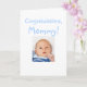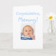 Unikt roligt kort för Grattisar från Nyfödd bebis till Mamma kommer från baby son, själv! Ladda bara upp pojke foto på framsidan och insidan för att skapa en vacker anpassningsbar så att hälsning kan glädja sig åt den nya mamman. Perfekt för en nyfödd bebis-flicka också. Ändra bara färg i texten från blått till rosa med knappen Anpassa. Mångsidiga kort kan också göras till ett sött Mors dag-kort från baby, även med hjälp av knappen Anpassa.