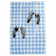 Cute twin-nallar i pojke som håller blå ballonger och bär med sig armbindel på vit bakgrund med blå gingham mönster. Text kan redigeras.
