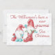 Ett roligt juldesign med nordiska skandinaviska tomtar på vintern, en sittande i en stövel och den andra bärande en röd påse med godsaker mot en blå snöflinga bakgrund med texten "Williamsons har en ny Tomte till jul". All text kan ändras. Anpassa framsidan genom att ändra texten och gör den personlig genom att lägga till din nya adress på baksidan. Ett idealiskt julfirande meddelande om adressändring att skicka till familj och vänner.