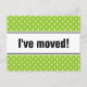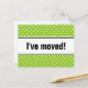 Nya vykort för flytta hemma | Polkadoter av äppelgrönt. Anpassningsbarnas flytta, vi har flyttat! Lägg till din ny adress på baksidan. Modern flytta kort för hem och företag.