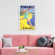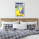 Återställd och digitalt förbättrad vintage resor poster att man visar en kvinna i ett badande kostym som hoppar över en scen på Caroline Bay-stranden i Timaru. Stranden är full av simmare och solbadare. I högerna avstånd du att vissa fraktaser är dockade i hamnen. Brister har tagits bort. Färg rättat.