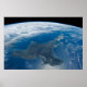 2 januari 2022 - Från Nya Zeelands norra ö som skiljer Tasmansjön från södra Stilla havet. På andra sidan Cooksundet söderut söderut från molntäcket. Sju segment omger Nordön och definierar dess särskiljande form. Inlandslandskapet omfattar gräsmarker (lättare gröntar), skogar (mörkare gröntar), vulkaniska platåer och bergsområden som bildas från sedimentärt sten. I mitten av ön, Sjö Taupo, ett krater sjö i en kaldera som bildades av ett supervulkaniskt utbrott, är gräns öns högsta topp, det aktiva vulkanberget Ruapehu. Öns vulkaniska karaktär beror på dess placering på den tektoniska plattgränsen mellan Indo-Australien och Stillahavsområdet Tallrikar. Denna tallriksgräns är en del av det vidsträckta Stillahavsområdet Ring av brand och leder till betydande geotermisk aktivitet och jordbävningar i regionen. Ytterligare vulkaner, bland annat berget Taranaki (Egmont Volcano), når också Nordöarnas landskap.