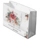 Gör ett varaktigt intryck med denna eleganta och sofistikerade stora presentpåse, perfekt för bröllop och speciella tillfällen. Den känsliga akvarellblommiga designen har en vacker blandning av rosa, persika och dammig blå nyans, kompletterad med guldbetoningar och en touch av grönska. Påsen är personlig med parets namn och bröllopsdatum, vilket ger en speciell touch till din gåva. Anpassa med dina bröllopsdetaljer och hitta matchande mönster från min "DreamHut" -butik.