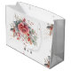 Gör ett varaktigt intryck med denna eleganta och sofistikerade stora presentpåse, perfekt för bröllop och speciella tillfällen. Den känsliga akvarellblommiga designen har en vacker blandning av rosa, persika och dammig blå nyans, accentuerad med guld och en touch av grönska. Påsen är personlig med parets namn och bröllopsdatum, vilket ger en speciell touch till din gåva. Anpassa med dina bröllopsdetaljer och hitta matchande mönster i min "DreamHut" -butik.