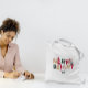 Märk och ljus, färgstark retypografi i rött, grönt och guld.