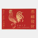 Enkelt golden tupp på röd bakgrund med guldpipande gräns och hälsning på kinesiska för detta anpassade kinesiskt rektangulärt dekal för nyår 2017. Matchande produkter: gratulationskort, vykort, inbjudningar, frimärke, röda kuvert och mycket mer...— "Tupp (förenklad kinesisk: 鸡; traditionell kinesisk: 雞/鷄) är en av de tolv år långa djurcykler som förekommer i den kinesiska djurparken i samband med den kinesiska kalendern. Året i Tupp representeras av det sjunde Gren-酉. Namn översätts också till engelska som Chicken. Tupp är den enda fågel som ingår i den kinesiska djurparken." wikipedia.