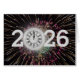 Nyår 2026 Fireworks och Måne Clock Hälsningskort
