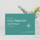 Nyårs Peace 2026-kort med vit helgdag som är utformad på trendigets tealbakgrund för grönt. Med anpassadets text kan du lägga till din egen familj namn. En vit snöflingbild accentuerar kortets framsida och med en vit bakgrund på baksidan. Ett enkelt sätt att skicka er önskemål av kärlek och fred under det nya året.