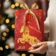 Denna festliga utformning firar det nya året 2026, året för hästen. Den har en gyllene hästillustration omgiven av ljusglimtar och konfetti på rikens röda bakgrund och symboliserar välstånd, energi och bra förmögenhet. Den djärva men ändå elegant-utformningen blandar traditionellt och modernt inslag, perfekt för nyår firande, gåvor och festligt bedrägeri.