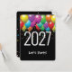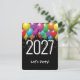 Färgfulla party-ballonger och stjärnornas konfetti svart för 2026 års party. År kan ändras. All text kan redigeras.