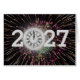Nyår 2027 Fyrverkerier och månklocka Hälsningskort