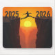 När solen dramatiskt går ner i bakgrunden hoppar en modig person från klippan markerad 2026 till den märkt 2027, förkroppsligande mod och spänningen av äventyr