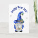 Nyår Blå Gnom med Klocka Helgkort