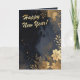 Nyår Gyllene Blommor I Blå Drag Kort