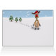 En söt och rolig julillustration: En renare med fotsteg i snö och en stor typografi i God jul och gott nytt år 2025 träd.