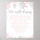 Modern dagdusch för barn sent på natten poster med motiv för vintern rosa och silver glitter snöflingor med texten "sena nattblöjor".