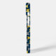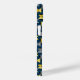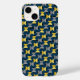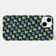Det här telefonfallet har en modern utformning av ovaler i marinen med halvcirklar i skuggor av gult och skuggor av grått i dem på en svart fält.