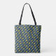 Den här väskan har en modern utformning av ovaler i marinen i mitten av århundradet, med halvcirklar i skuggor av gult och skuggor av grått i dem på en svart fält.