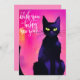 En strålande nyårs gratulationskort med lekfull konst. Kolla in den svarta katten med gröna ögon och lite drömska urbana vibbar.
