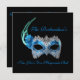 Denna design har en vacker mask med spets och fjädrar i nyanser av rik turkos och akblått. Anpassa med din personliga information för att passa dina behov. Du kanske vill ändra evenemangstiteln så att den passar för Mardi Gras, födelsedagar och mer.