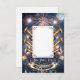 Fira det nya årets ankomst med denna strålande inbjudan, med en natthimmel som exploderar av färgglada fyrverkerier och en lysande fullmåne. Gyllene trumpeter förebådar festligheterna, medan det centrala vita utrymmet väntar på dina festdetaljer. Bandet utropar “Nyårsfest” i en elegant skrift, omgiven av gyllene gnistor, och sätter tonen för en oförglömlig kväll.
