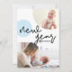 Lägg märke till er pojke födelse och önska alla Gott nytt år med det här personlig baby-födelseannonseringskortet. Anpassa den här designmallen med blå cirklar och grått färg med dina favoritfoton på det nyfödda barnet. Redigera födelsestatistiken (redigera vid behov), namn och speciella hälsning på baksidan av detta kort. Modern manustypografi för ord "nyårsstarter".