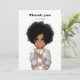 Jag vill tacka er för att ni med detta tackkort för snyggt har en afrikansk amerikansk kvinna som är inslagen i glansket ljus och som är inslagen mot en snygg mörk. Det djärva "Tack"-meddelandet och anpassadet "Kärlek [Namn]"-detaljen ger en personlig och modern beröring och skapar perfekten för hjärtliga tack med en chic- och contemporary-vision.