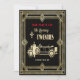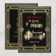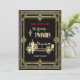 Nyårsafton-partyinbjudan till en gård på 20:s party. Konsdekordesign med stil-bilen och chauffören i vintage 20 i guld-design. Detaljerad information om party på baksidan av kortet. Fyll i informationen för din party-samling.
