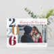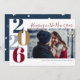 Prisvärda anpassade tryckta julkort med en enkel mall för anpassning. Meddela din julhelgshandling med detta moderna minimalistiska nyårskort. Designen har stor typografi med det nya årets datum och "Ringing in the New Year" rubrik i burgunder, marinblå och guld färger. Anpassa det med ditt foto och anpassad text. Använd designverktygen för att välja valfri typsnitt och färg, lägg till fler foton och skapa en unik nyårs fotomagnet.