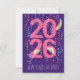 Roliga ljusa festband, stjärnkonfetti, midnattsmåne och klingande Champagne-bubblande gnistrande nyårsfestinbjudan. Anpassa denna anpassade inbjudan med dina egna ord och festdetaljer. Perfekt för företag eller privata nyårsfiranden 2020. Design och konst av www.mylittleeden.com