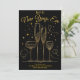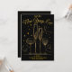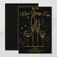 Ring in det nya året med stil med våra festliga och anpassningsbara champagneglas i guld & Nyårsfirande-inbjudan med konfetti! Denna eleganta design visar champagneglas i guld som klingar samman mitt i en fluga av guldglitter, allt mot en sofistikerad svart bakgrund. Texten "Följ med oss på Nyårsafton" visas tydligt överst och inbjuder dina gäster att vara med på en minnesvärd fest.