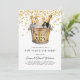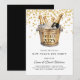 En modern nyårsafton vattenfärg inbjudan, med en hink champagne och guldglitterkonfetti på vit bakgrund. Enkel modern elegans. Lämplig för alla år. Anpassa för valfritt år.