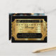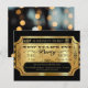 Vintage Guld och Svart Nyårsfirande Inbjudningskort Trendig och vintage stil biljett, redo för dig att lägga till dina egna personliga detaljer. Guld biljett med svart bakgrund, vintage klocka, present, maskerad mask och stjärna grafik och typografi som påminner om 1920-talets stil. Lägg till dina egna detaljer i kalligrafi skript. Tillkännage din kommande nyårsfest med denna roliga biljett event inbjudan!