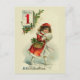 Designad av Susan Epps Oliver. Snygg vintage bild av en flicka som är väldigt klädd i rött och vitt och bär basket av holly. En folklig sprit stöder ett kort som visar det viktiga datumet!
