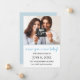 Ett modernt och chic nyårsmeddelande om graviden ramar bild i mjuk pastellblått. De flesta av bilder visar ett dräktigt par, ett ultraljud eller båda. Ditt foto tar upp den övre halvan av den här graviden. En pastellblå linje springa under den. Frasen ett nytt år, ett nyfödd bebis, skrivs nedan i ett trendig blått skript. Ditt baby namn och förfallodatum tillsammans med ditt namn är klara med gravidens meddelande. Kortets baksida är också mjuk, pastellblå.
