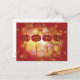 Kinesiska Lunar-nyårskalligrafi över lycklig Skriva textsymboler på röda Silke-lyktor med teaseler på ett Sparkly Auspicious Golden Red Shimmery Bokeh Background Festive Illustration Teckning vycard