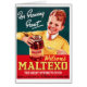 Återställd och digitalt förhöjd visning för vintageadvertizingaffisch ett le pojkeinnehav en tesked och en burk av Maltexo med torskleverolja. Han ha på sig en gul jersey, en vitskjorta och den röda tien. Borttagna Imperfections. Korrigerade färger.