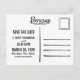 Konstnären Katharine Woodman-Maynard bestämde sig för att göra sin populära Brooklyn Bridge-design till ett vykort "Save the Date" efter att flera vänner begärt det för sin egen New York bröllop. Genom att radera linjer medan hon ritar, ger Katharine Woodman-Maynard ge sitt konstintryck av träsket. All informationstext på vykortets baksida är redigerbar, så denna design behöver inte nödvändigtvis användas för Spara datumet, utan kan användas för alla typer av händelser.