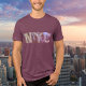 Grafik t-shirt med New York City (NYC). NYC-grafiken är på framsidan av den här t-shirt. Multi-färg. Anpassa baksidan med ditt namn eller önskad text. Underbar t-shirt för manar, kvinnor och barn. Använda mallen för att skapa din egen NYC-grafik t-shirt.
