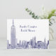 NYC Skyline 01 Etched Wht Bröllopsfest Blå Inbjudningar