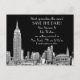 NYC Skyline Etched Look 01 Inbjudan Svart & Vitt, Svart Bakgrund Visad: Välj Din Bakgrundsfärg - Spara Datum Postkort ==========